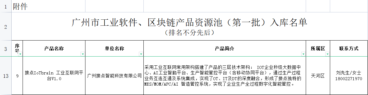 繼4月再一次成為廣東省第一批智能制造生態合作伙伴之后,接點智能在6月又成功入庫廣州市工業軟件、區塊鏈產品資源池(第一批)名單,也將繼續以專業優質的服務能力,為廣大企業提供數字化轉型升級服務。